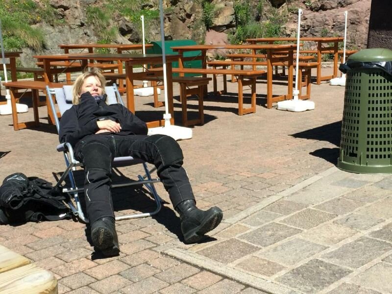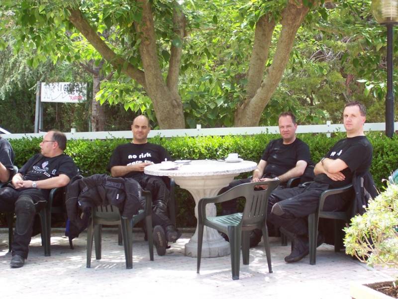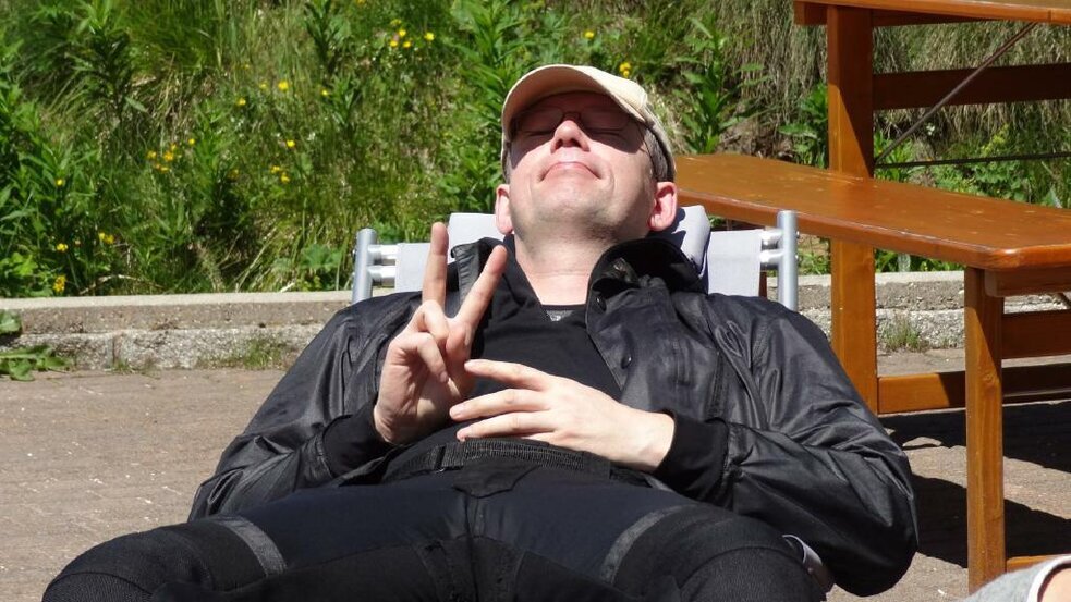 Entspannung nach der Kurven-Hatz. In den Pausen werden die Gräten gestreckt, es wird fotografiert, gefachsimpelt, Benzin geredet und die letzte Etappe nochmal detailliert erörtert. In den Pausen gibt es immer was zu entdecken und natürlich locken auch die ach so geliebten lokalen kulinarischen Raffinessen.